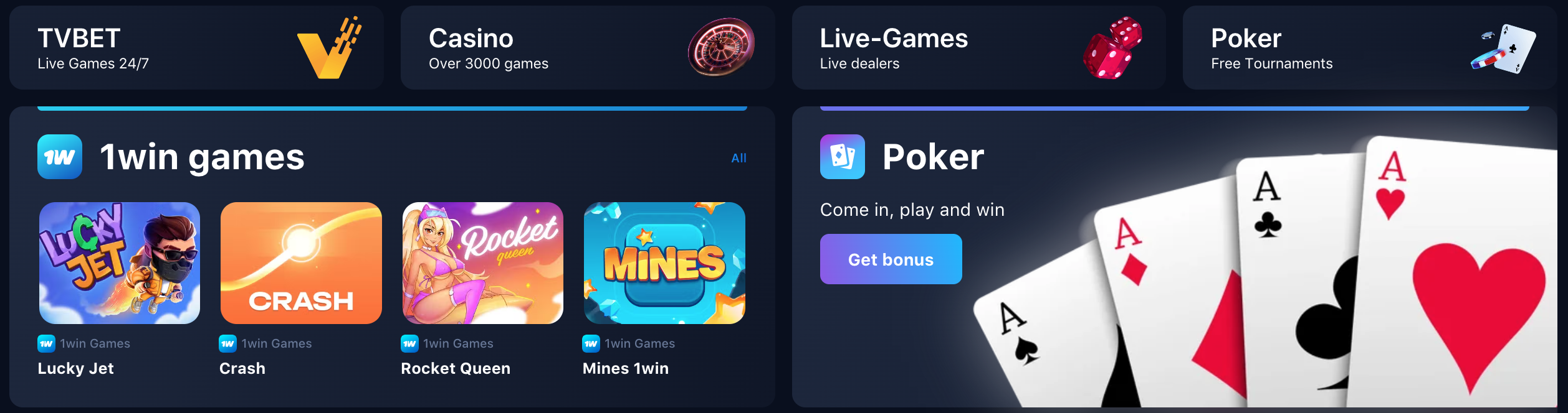 Egyéb Játékok: Az 1win kínálatában találhatsz még kaparós sorsjegyeket, kenót, bingót és egyéb azonnali nyereményjátékokat is.